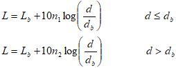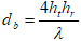双射线模式给出的路径损耗被写成为收发之间的距离d的函数,并且可以用两个不同斜率n1 和n2 的直线段近似。两线段之间的突变点也称为拐点出现在离发射端的距离为: