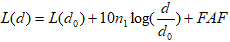 式中,n1 是位于同一楼层上的路径损耗指数,它取决于建筑物的类型,其典型值是2.8;FAF 是楼层衰减因子,它是楼层数和建筑物类型的函数。